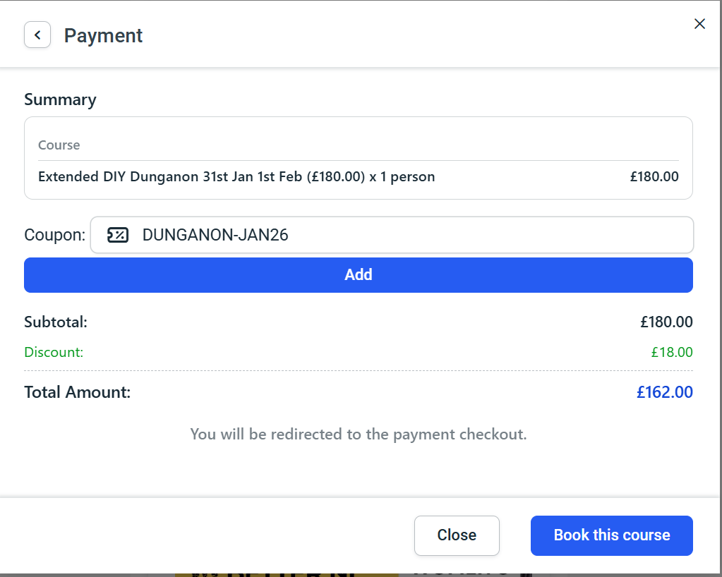 Complete payment to confirm your booking. You’ll receive a confirmation email straight away with your booking details.