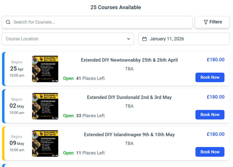 Select your course date, then click Book Now on the course card to begin booking.